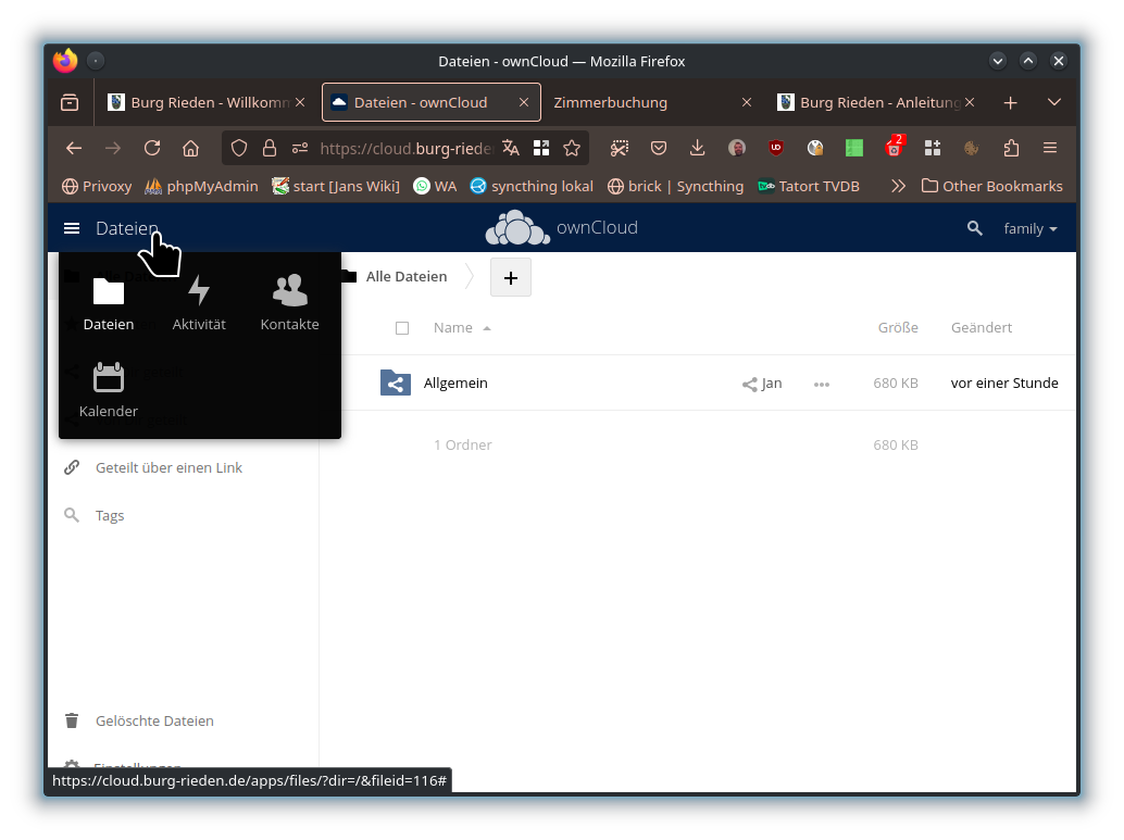 Dateiablage und Kalender, bereitgestellt mit “OwnCloud”, findest Du hier.